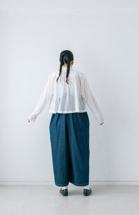 ギャザー使いと脇のタブが気になるウエスト、ヒップまわりをカバー