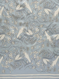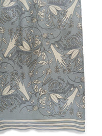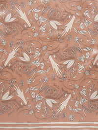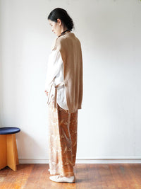 光沢のあるキュプラシルクのツイルに手捺染(型を使用し、1版ずつ手作業で染める染色法)でプリントしました