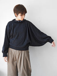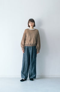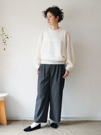 たっぷりとしたボリューム袖がポイントのニットプルオーバー