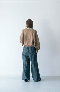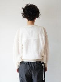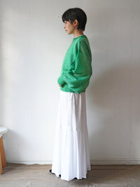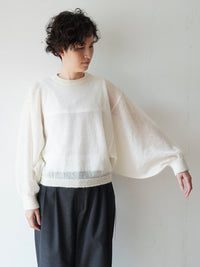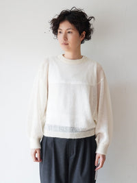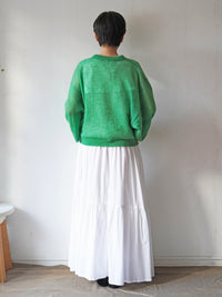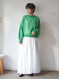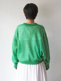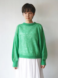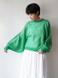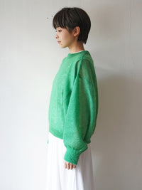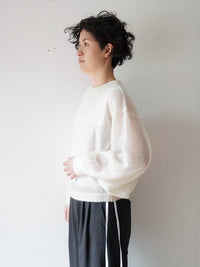 キッドモヘアの風合いを活かし、ざっくり薄めに編み上げました