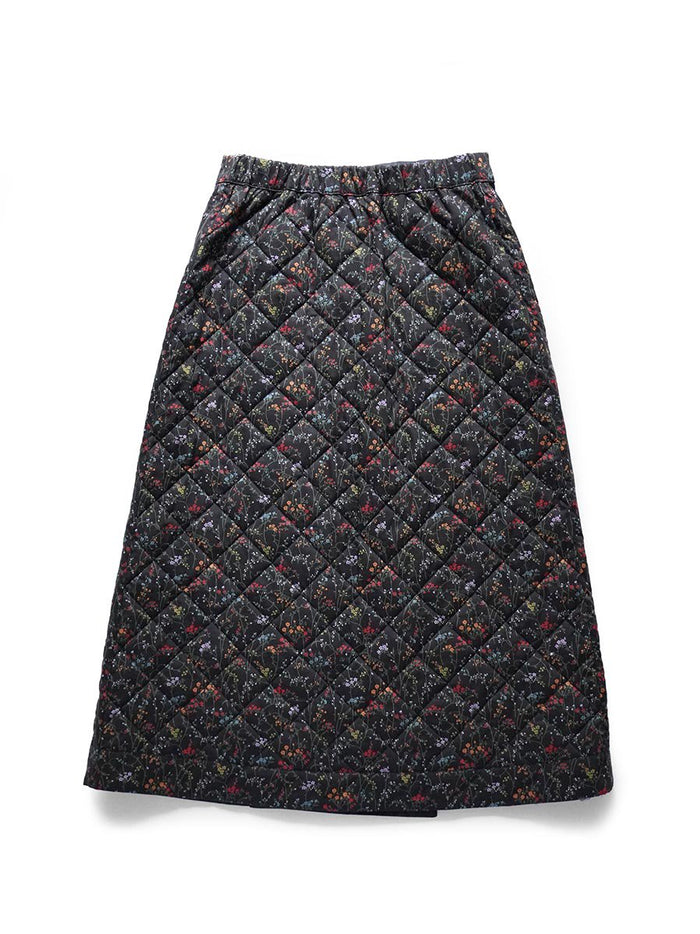 LIBERTY PRINTリバーシブルキルティングスカート/ブラック無地×Erica