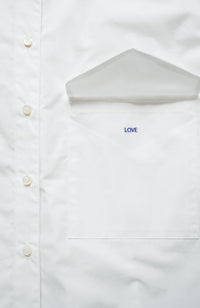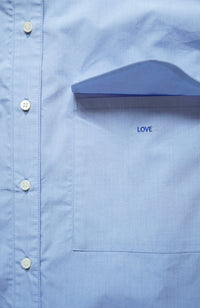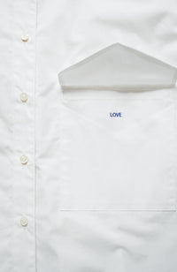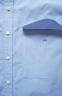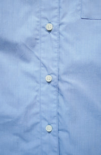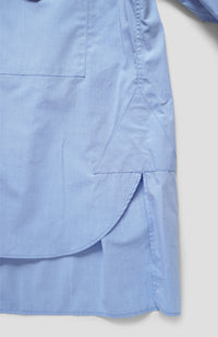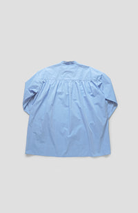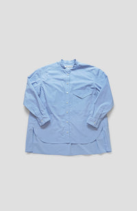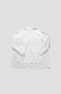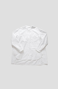ゆったりとしたサイズ感のバンドカラーシャツ