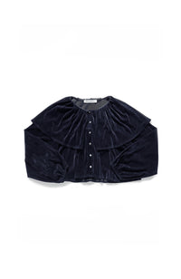 ソフトな肌触りのチュールにフロッキー加工を施し、ベルベットのような起毛感のある生地に仕上げました