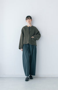 裏地や見返しが無いのでとても軽く、毛布にくるまれているような着心地