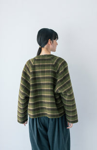 無地×チェック柄のリバーシブルショートコート