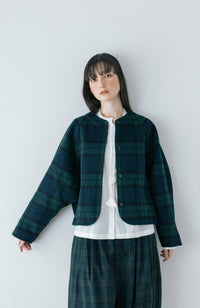 無地×チェック柄のリバーシブルショートコート