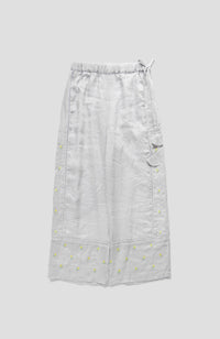 可憐な刺繍が目を引くワイドシルエットパンツ