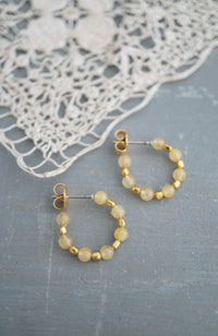 小粒の天然石を繋げたフープピアス