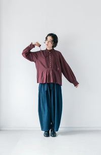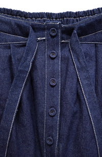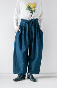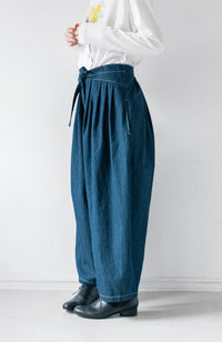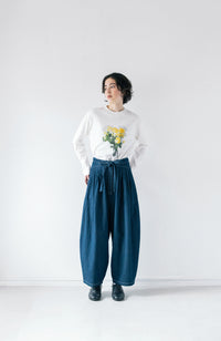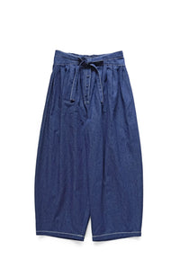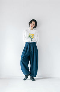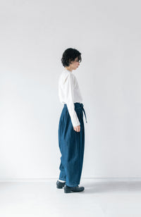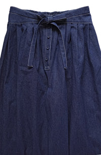 - Waist yoke switching - Elastic waist at back - Adjustable waist ribbon - Same design also available in a different material (cotton typewriter)
