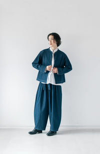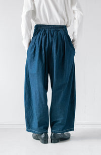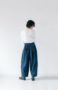 Thin denim with a linen blend. A natural and supple fabric made from a blend of soft Indian cotton and drapeable rayon.