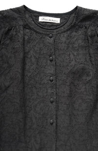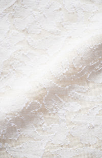 A three-dimensional pattern of flowers and plants floating on a thin cotton mesh made in India using cut jacquard.