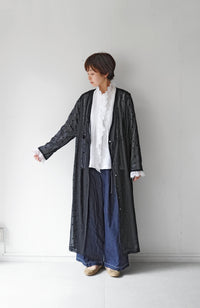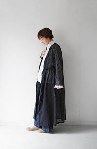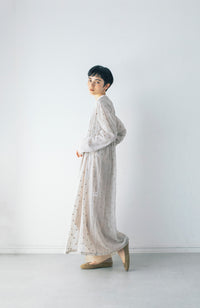 ・Plain ribbon at waist ・Long length ・Long sleeves