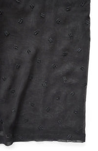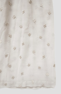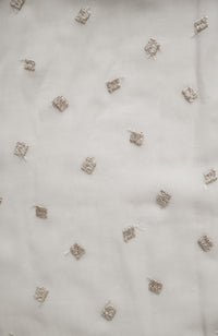 Embroidered with glitter thread on a thin polyester cotton voile fabric.