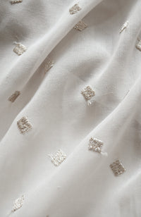 Lightweight voile with lamé embroidery that gives off a subtle glow