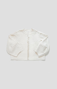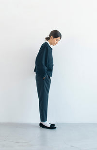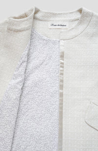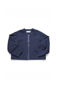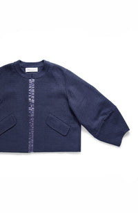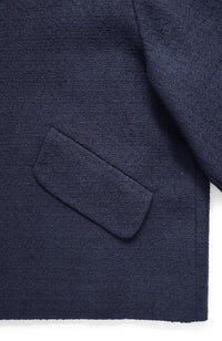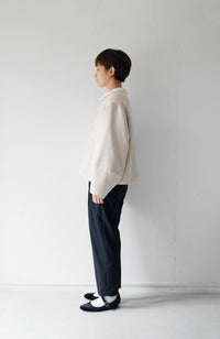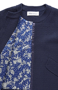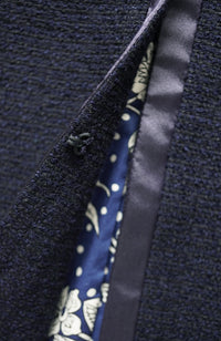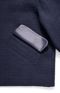 Flap pockets, satin piping on front, long sleeves, three-dimensional sleeves
