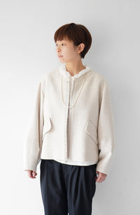 Woven fabric made with a mixture of thick and thin threads. Uses a variety of threads, including slub and ring. The natural unevenness on the surface of the fabric creates a plump, expressive material.