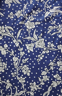 The monochrome oriental flowers are arranged in a pattern laid out on top of a polka dot pattern.