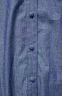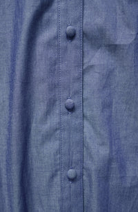 Gathered back yoke, button closure (8 covered buttons in the same material)