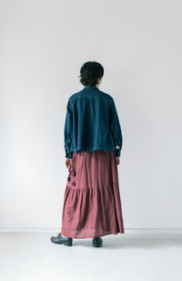 Thin denim with a linen blend. A natural and supple fabric made from a blend of soft Indian cotton and drapeable rayon.