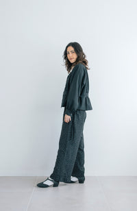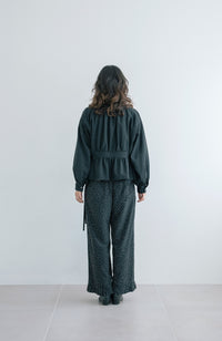 Wide silhouette pants with pleated hem