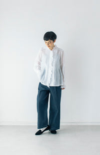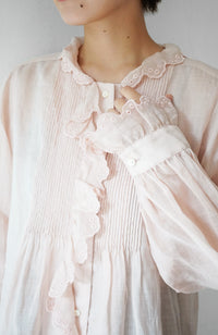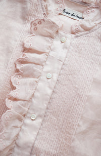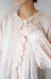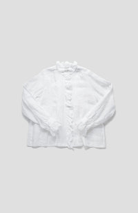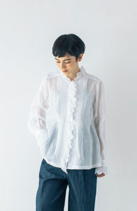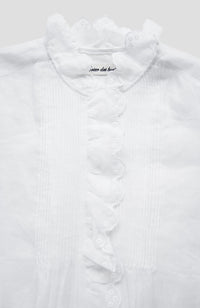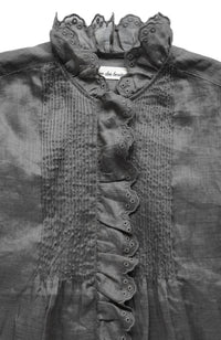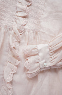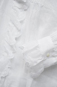 A gorgeous blouse with embroidered frills and detailed hand pin tucks.