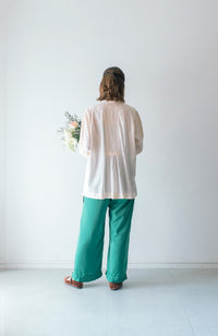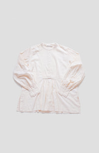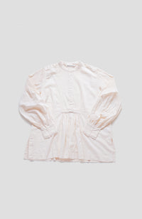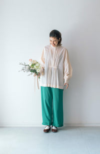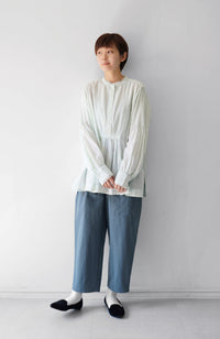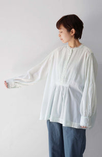 A blouse with detailed hand pin tucks, CLUNY lace, and voluminous sleeves.
