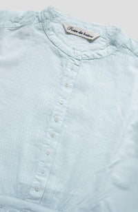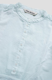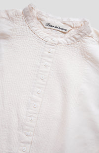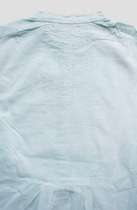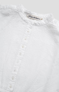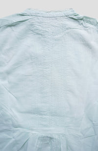 Extremely fine hand pin tucks on the front and back body and sleeves, a total of 144