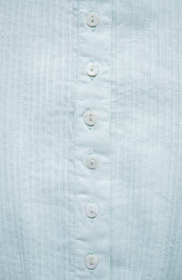 The sleeves have pin tucks in the middle and small gathers at the cuffs.