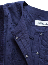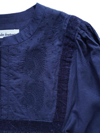 Paisley pattern embroidered on the front yoke and sleeves. Paisley pattern redesigned from a French antique.