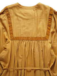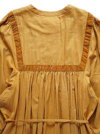 Flared silhouette with ample gathers under the yoke and at the sleeve seam