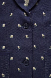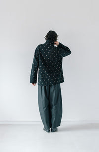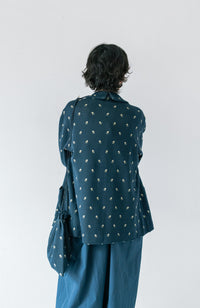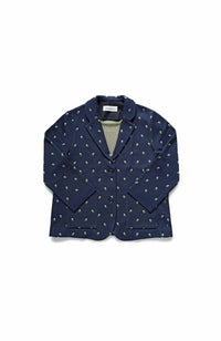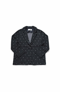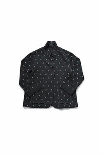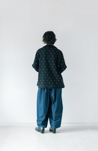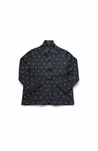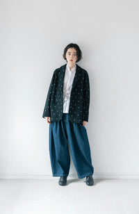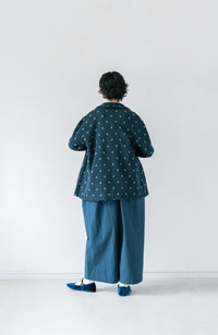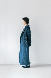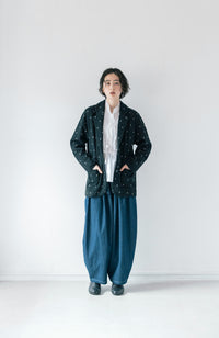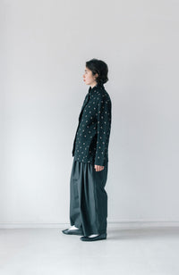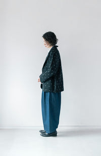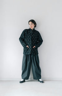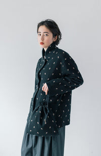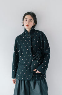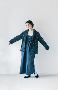 ・Front button opening ・Patch pockets ・Relaxed jacket ・Lightweight like a cardigan ・Stand-up collar gives a sharp impression around the neck