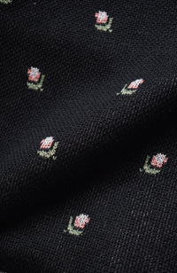 The 2025SS cross-stitch embroidery pattern has been turned into a knitted jacquard using a different technique.