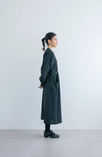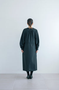 A long crew neck dress that hugs the neckline