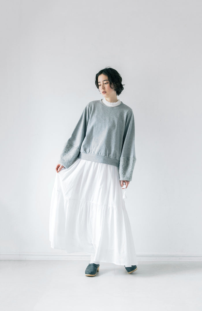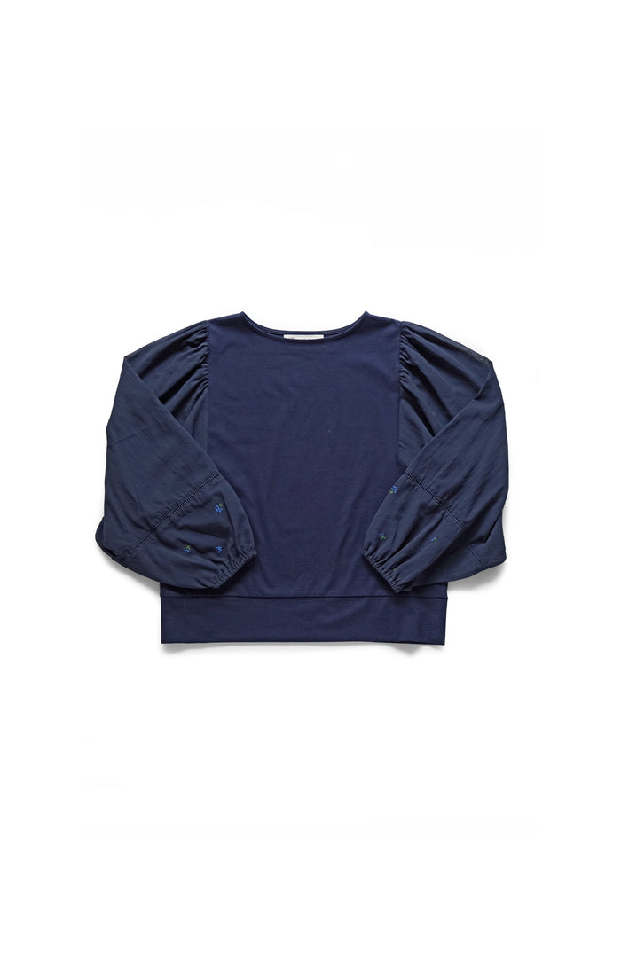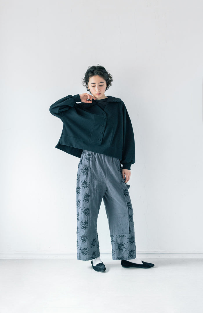 Flower Embroidery Gathered Sleeve Pullover (2025 Autumn & Winter Collection)