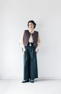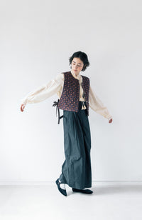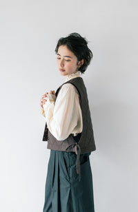 Ribbons on both sides Pockets on the Liberty side Perfect for changing seasons Can be worn under a coat or jacket Short vest Light and warm