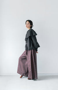- Gathered three-dimensional silhouette - Large collar makes it easy to layer with a cardigan - Mini gingham with the same design also available