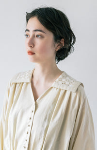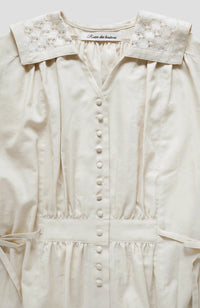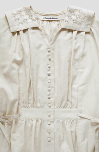 The sailor collar is made of cool, sheer Russell lace.