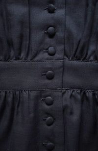 The many covered buttons and epaulette sleeves give this piece a vintage feel.
