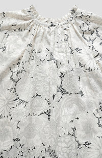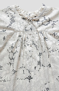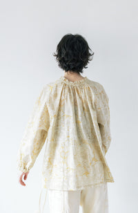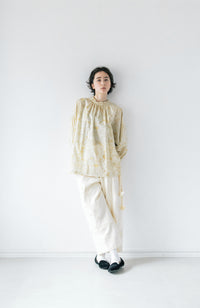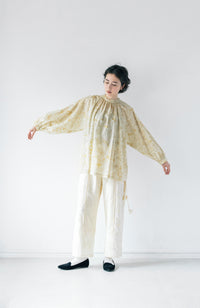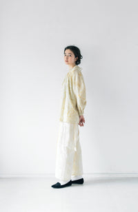 ・Ruffled collar ・Pico cut embroidery ・Elastic cuffs ・Collar ribbon ・Soft silhouette like a smock
