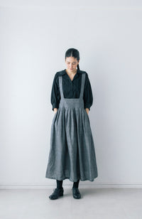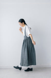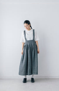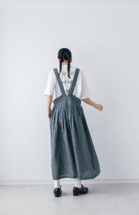 ショルダーストラップがポイントのタックスカート