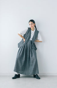 ブラウスやカットソーと合わせて普段使い、同素材のベストとセットアップでお出かけ仕様