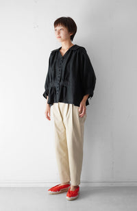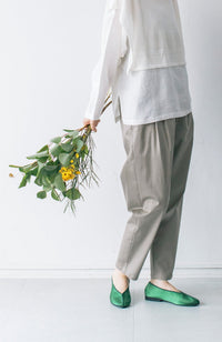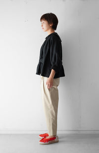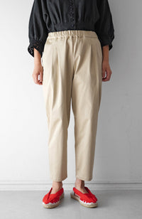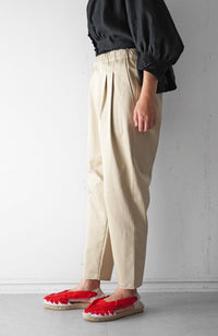 裾にかけて細くなるすっきりシルエットのテーパードパンツ