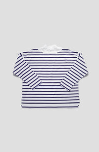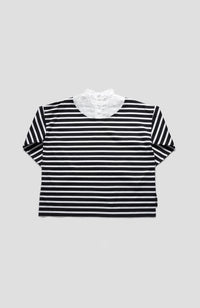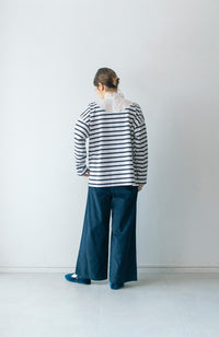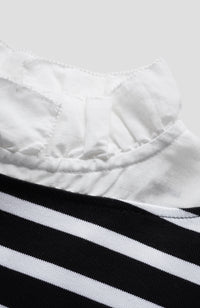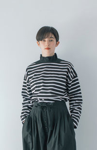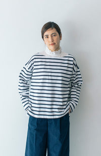 お首元を華やかに見せてくれるフリルカラーのコンビプルオーバー