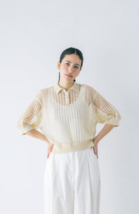 透け感と軽さが上品なおしゃれ度アップのポロニットです