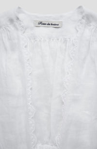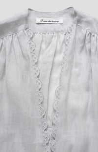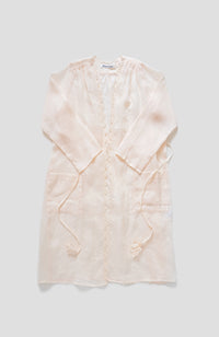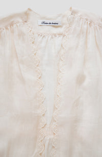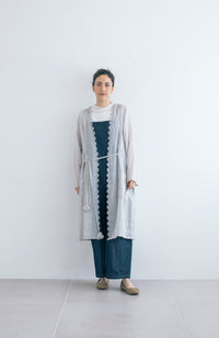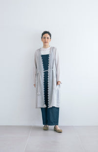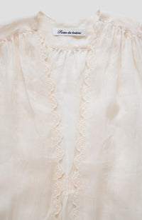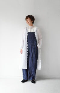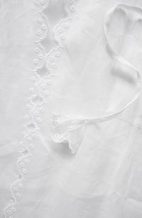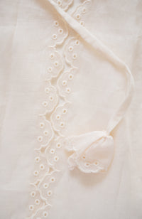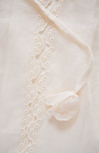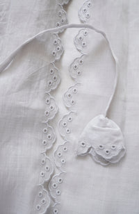 ボーラー(生地にメスで穴を開け、糸でかがる刺繍技法)とスカラップの刺繍を施しました