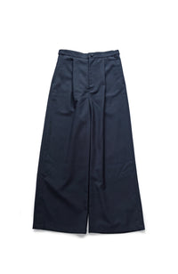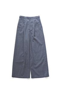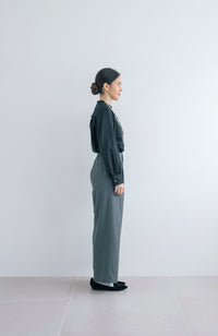 スッキリ縦長効果のあるワイドストレートシルエットのパンツ