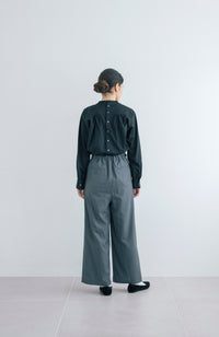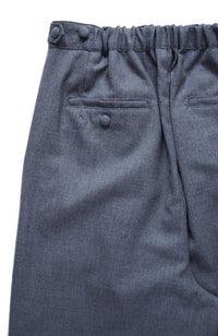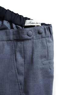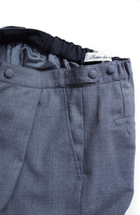 ・後ろウエストゴム仕様(両脇調節タブ付き、共地くるみボタン2個)