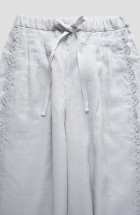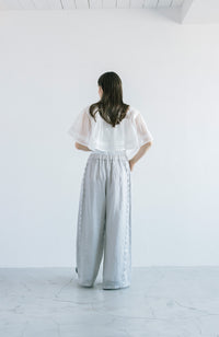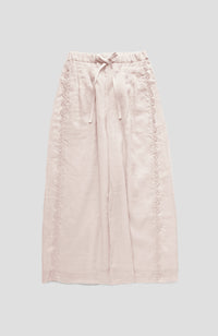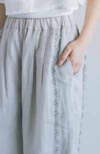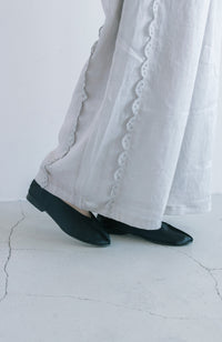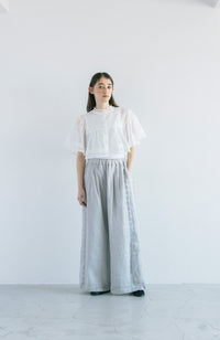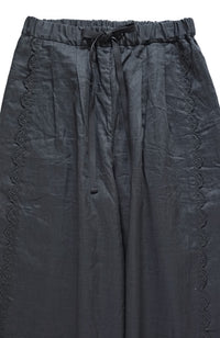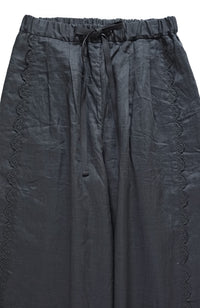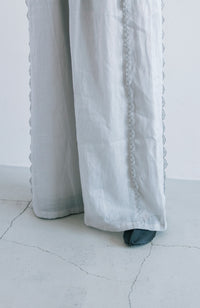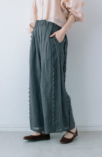 ひらひらと揺れる刺繍が華やかなワイドストレートパンツ