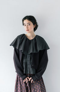 インパクトあるワイドカラーがゆったりと肩にかかります