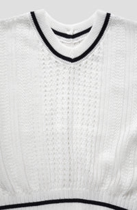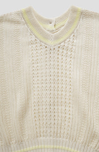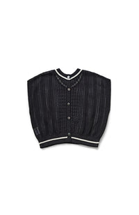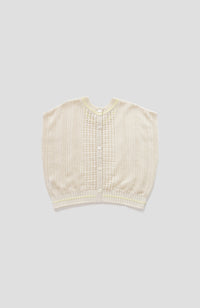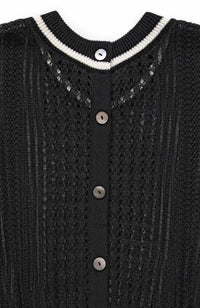 クルーネック側はボタン開き 大きめの貝ボタンが並びます